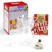 HARIO玻璃手沖咖啡壺. DPW1-2人含法蘭絨濾布